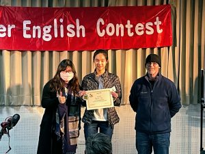 109學年有得實驗教育機構英語競賽於12月31日舉行。今年的英語競賽,有得共邀請了中原大學李家遠教授、武陵高中褚謙吉老師以及壽山高中呂雅惠老師等三位校外評審。參賽的同學各個實力堅強,在班內競賽脫穎而出,代表各班參加今日的賽事。在激烈的競爭中,多位好手表現異常的亮眼獲得評審青睞,獲頒獎牌。在此恭喜以下獲獎同學: