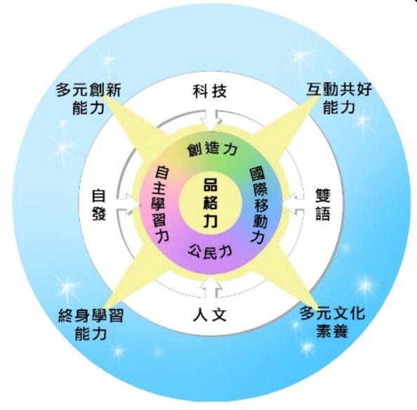 教育目的:21世紀工業 4.0 時代,新公民除要有熟稔的雙語 能力(BLQ),也要有紮實的品格能力(MQ)、情緒能力(EQ)、創新能力(CQ)及對機器溝通的能力(CIM)。未來所需要的人才,是能具備跨領域、跨地區發展的能力。對個體而言,「移動力」就代表「競爭力」,要先能「水平移動」,才能「向上移動」。所謂「水平移動」,就是建立跨國企業或進行國際交流,故要培育 具備「移動力」的人才,除外語能力外,更重要的是要能擁有在陌生的環境中和不同文化、背景的同事相處的能力。簡言之,這些能力包括外語溝通力、跨文化適應力、專業力及團隊合作力。據此努力思索學生教與學的實驗走向,擬定實驗計劃藍圖,使我們學生在制式體制外又能多一個沉浸在國際全語言學習環境,經課程階段任務與目標,培育具有全球移動力人才,且具競爭力與國際移動力的世界公民。